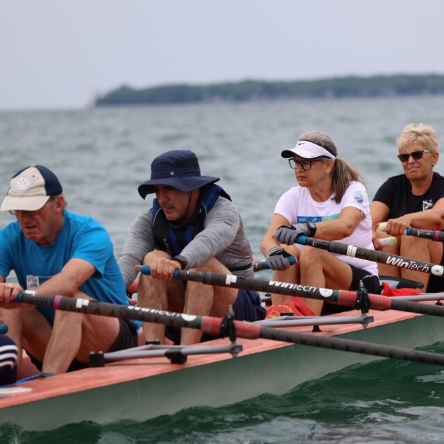 The 10 coastal quads were once again rigged and launched from Kingston Rowing Club on Day 5 of the tour to commence the 1000 Islands experience which would end at Mallorytown on Day 7. As the boats wound their way through the Admiralty and Fleet islands, curious onlookers were spotted running for their binoculars and cameras. A fleet of boats like this is a rare sight in these waters.