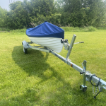 Coastal style, recreational single, comes with trailer, oars, and cover. This boat has collapsible riggers and can also be used as a coxed single. It has only touched the water a handful of times and is in great condition.