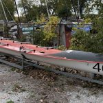 The McNamara’s Band, a Kaschper 4+ (‘95 4+ LW) for sale for $500.00. This boat comfortably fits midweight crews and has raced at the CURA and CSSRA levels in past years. The integrity of the hull is in good condition. It has been well used and cared for, but it has been several years since it has seen the water. After it retired from the current racing fleet, it was kept indoors during the spring, summer, and fall seasons. Several minor repairs have been done, but all were resolved with no ongoing issues. We have many spare parts for this generation of Kaschper and can also supply spares to supplement the sale. The steering is intact, and there are the appropriate mounts for a new sound system, but the original sound system is no longer functional. Available for pickup at the Royal Canadian Henley, Head of the Trent or other arrangement.