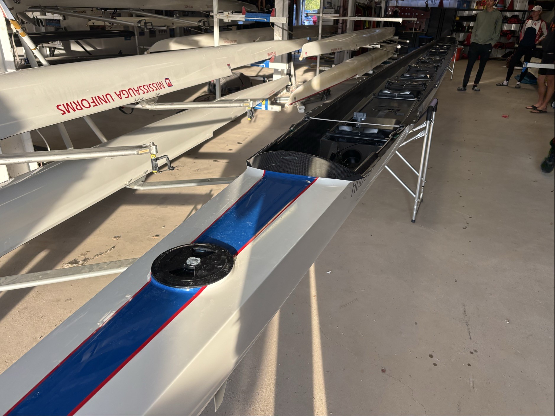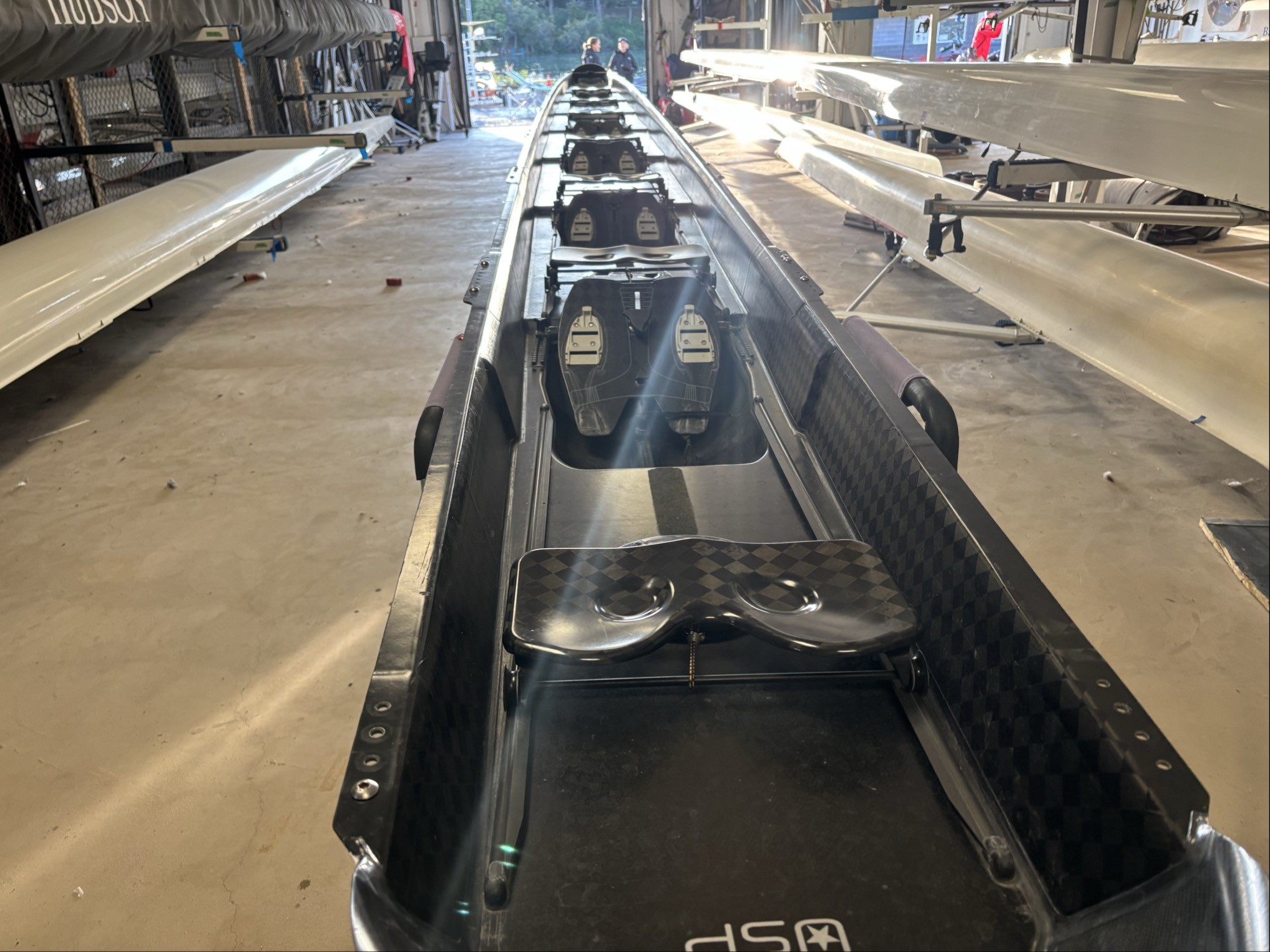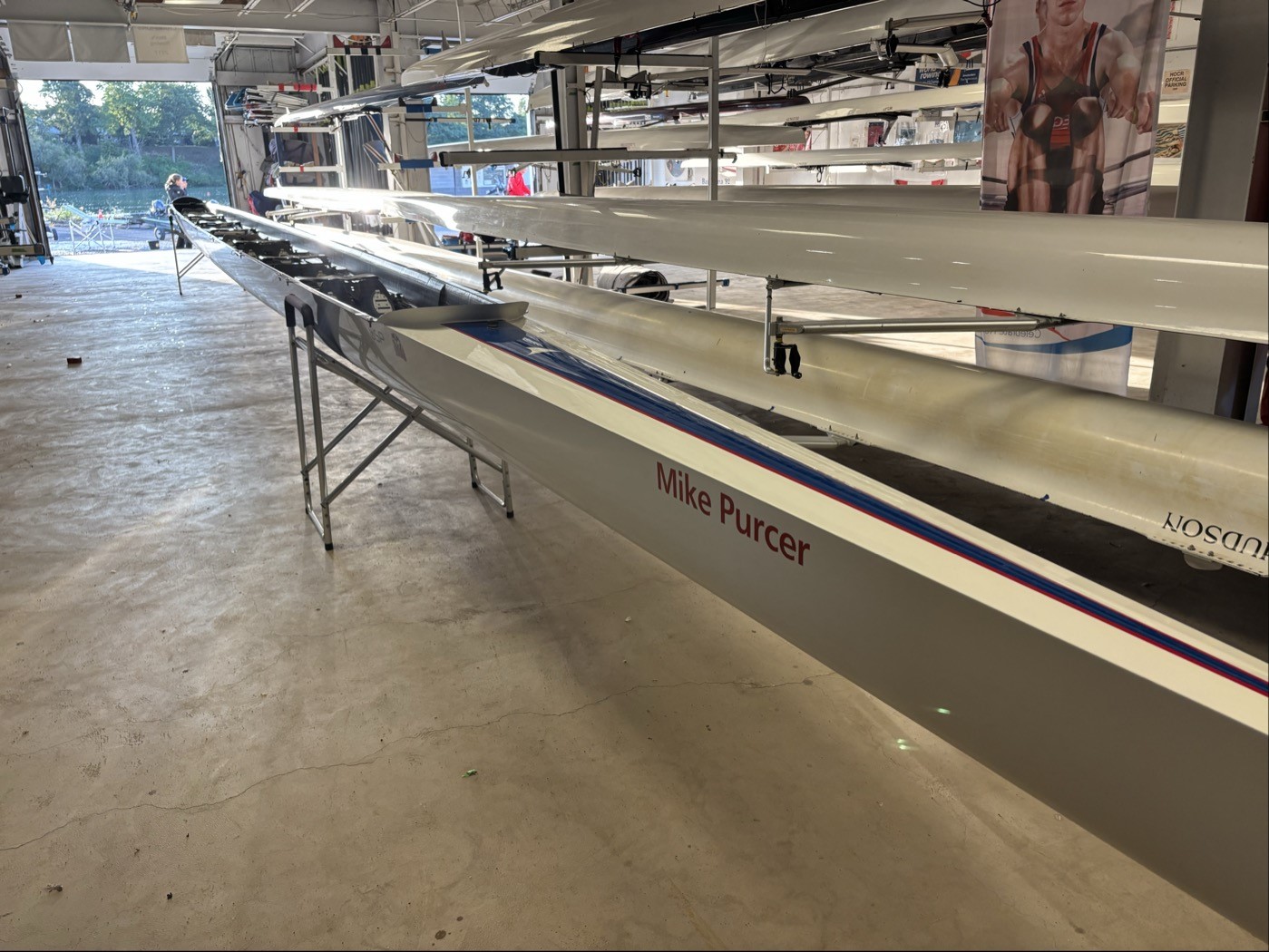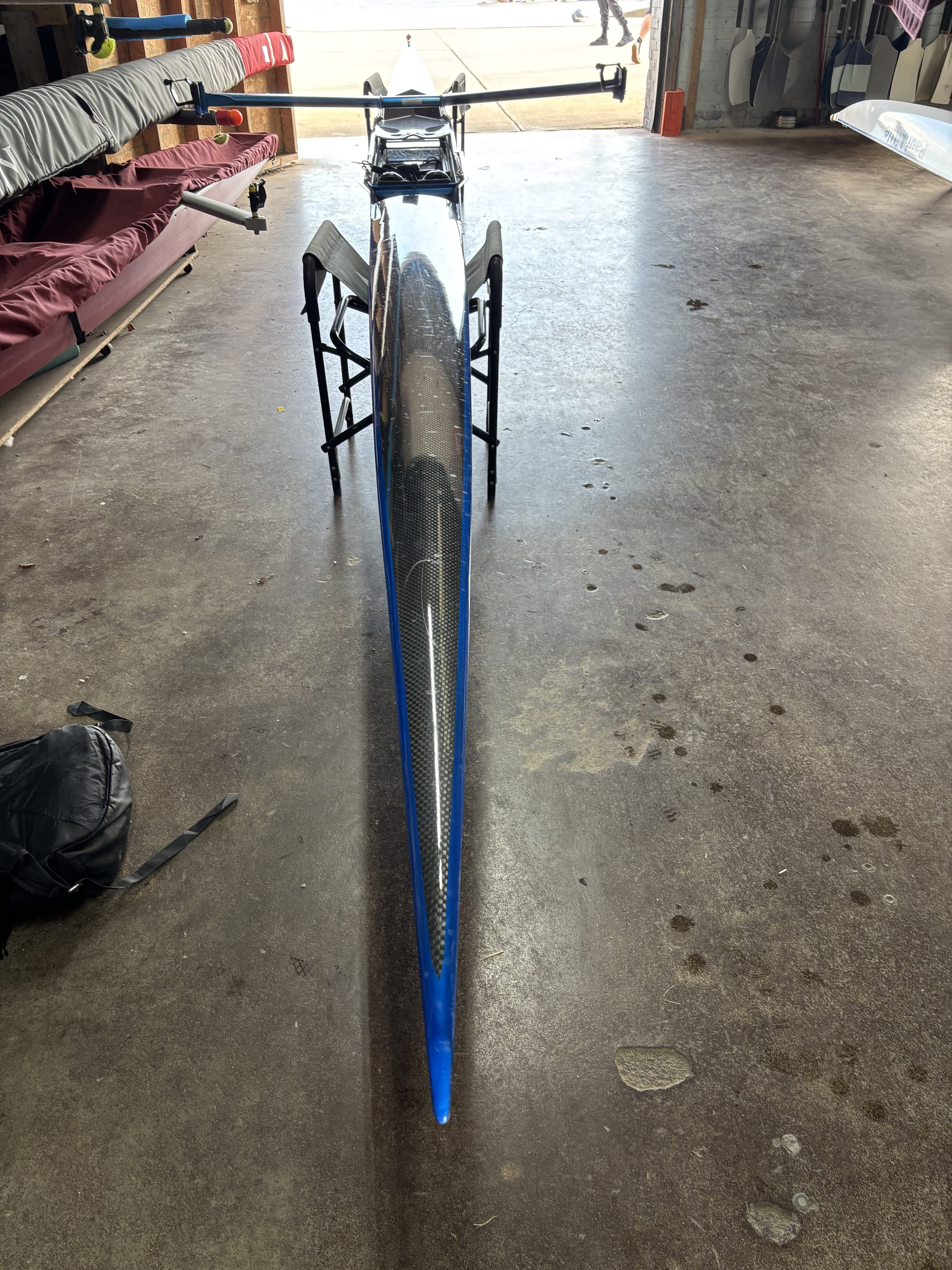 1998 Hudson Single Lightweight. Excellent Condition. Stored indoors at the club facility, lightly rowed in fresh water, not damaged. New Hudson shoes have been added to the boat. Suitable for 115-135lbs. The price for the boat is $2400CDN, or best offer. Croker Oars can be purchased at an additional cost of $300. You will have to arrange your own boat transportation.