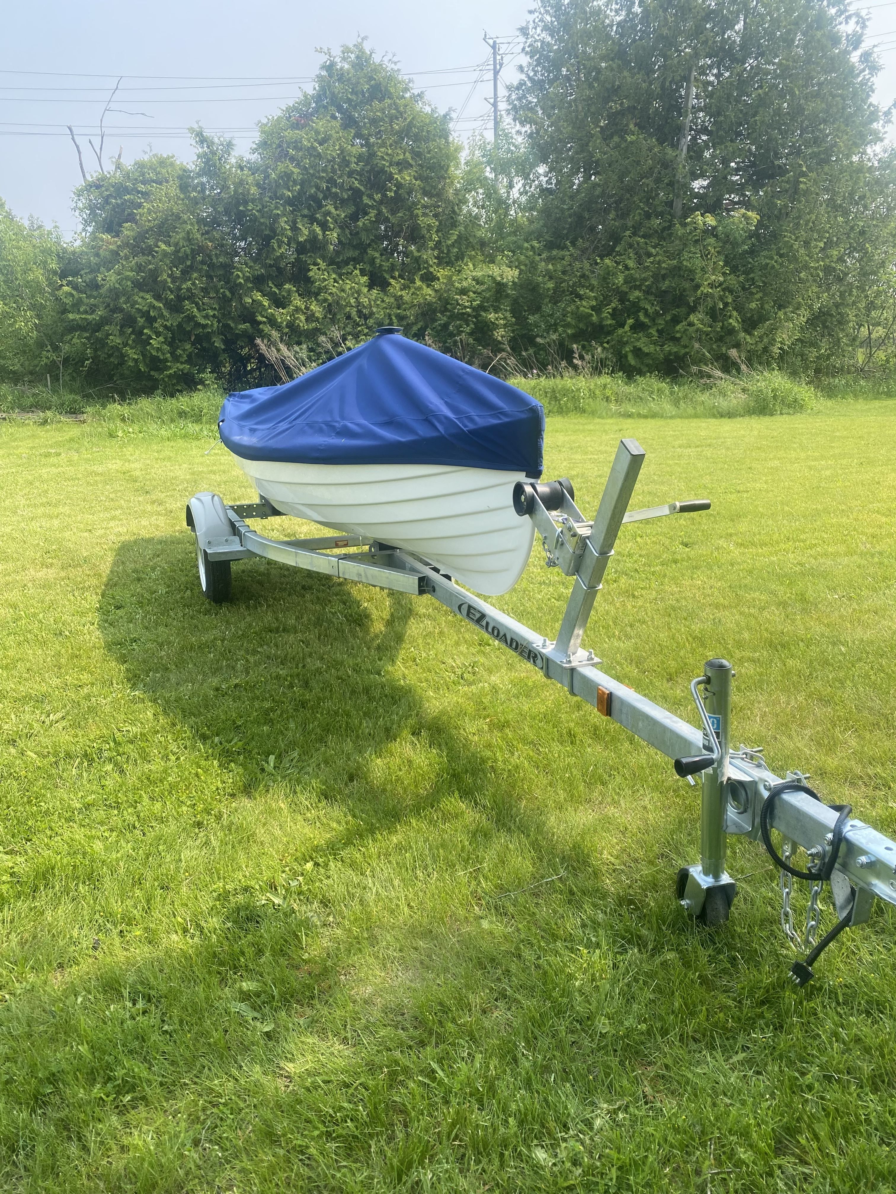 Coastal style, recreational single, comes with trailer, oars, and cover. This boat has collapsible riggers and can also be used as a coxed single. It has only touched the water a handful of times and is in great condition.