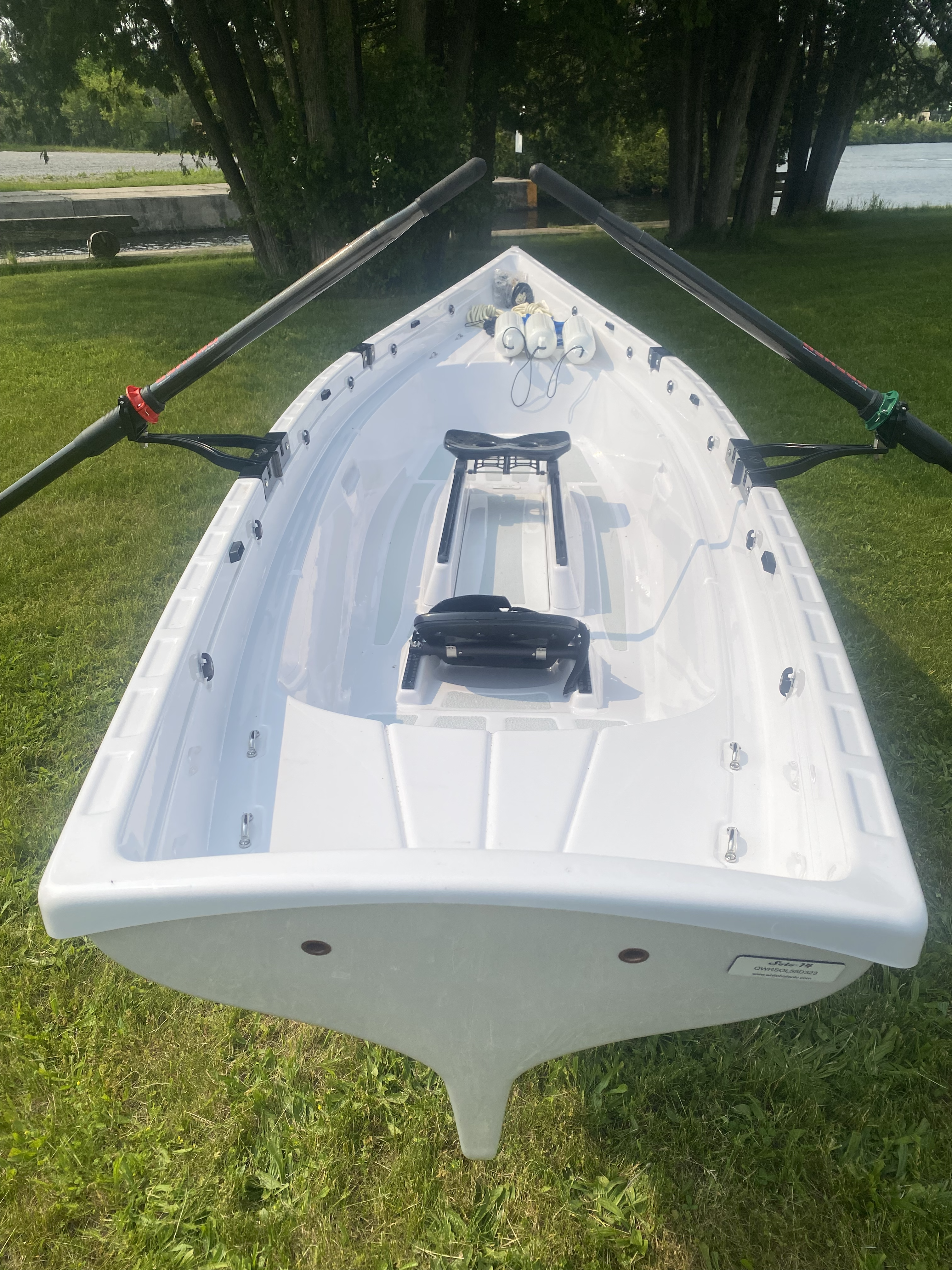2014 Fluid Elite Single, lightweight with Croker blades: Located in St. Catharines, Ontario, Canada. I have owned and rowed this boat since 2017. Boat comes with Croker Arrow blades. Boat is for a maximum weight capacity of 140lbs/64kgs. Selling for $9200 or Best Reasonable Offer. Serious inquiries only please. This boat has only been rowed during the summer months and has been well maintained, although this boat does have some cosmetic dings that I have easily repaired. Boat is at the St. Catharines Rowing Club and is stored in doors when not in use. Fluidesign’s original and most popular model has consistently delivered exceptional results through engineered performance. The minimal weight and striking presence of the FluidElite will make for legendary finishes. New: $14,000. My price: $9200 CAD which includes the Croker Arrow S34 Soft blades. Can throw in Stroke Coach for $250.00 CAD (value: $650.00 + Tax CAD).