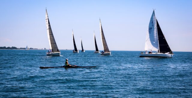 Krahulec shared, “Conditions were not favourable! Prevailing westerly winds and waves created the most adverse rowing conditions possible for my ‘due north’ compass bearing (Port Dalhousie to Toronto). It was a lesson in extreme perseverance! At one, point nearing completion, I found myself in the midst of a sailing regatta, requiring a desperate 500m side-ward charge to evade a fleet of sailboats racing toward me!”
